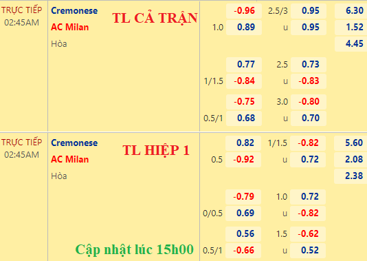 (Nội dung chốt kèo sẽ xuất hiện trước khi bóng lăn khoảng 30 phút)