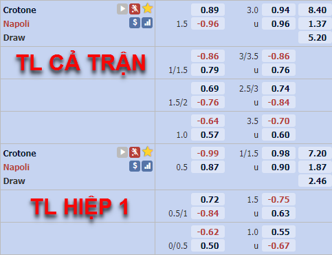 Những thay đổi của nhà cái châu Á đem lại dấu hiệu tốt cho lựa chọn cửa dưới trận này. Nhưng theo chúng tôi hiện tại Napoli đang phần nào tìm kiếm được sử ổn định, họ có lợi thế về mặt tình thần sau chiến thắng 4-0 trước AS Roma, trong khi đó tân binh Crotone có vẻ như vẫn chưa quen với môi trường thi đấu của Serie A và họ khó lòng có thể tạo nên bất ngờ vòng đấu này.
