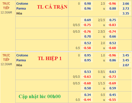 AEGoal chốt kèo bóng đá trực tiếp trận Crotone vs Parma diễn ra lúc 00h30 ngày 23/12 trong khuôn khổ VĐQG Italia sau khi dựa trên tính toán, chuyển động về kèo châu Á và đội hình ra sân của 2 đội.