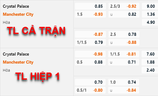 AEGoal chốt kèo bóng đá trực tiếp trận Crystal Palace vs Man City diễn ra lúc 00h30 ngày 12/03/2023 trong khuôn khổ giải Ngoại hạng Anh sau khi dựa trên tính toán, chuyển động về kèo châu Á và đội hình ra sân của 2 đội.