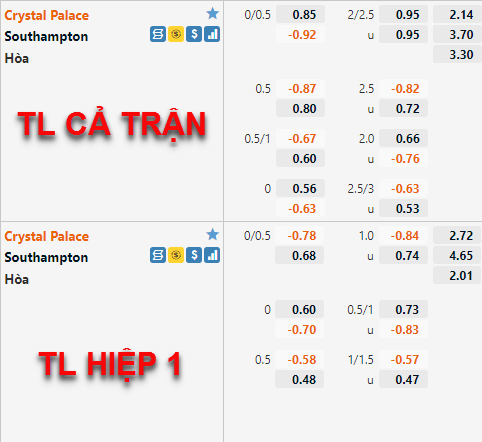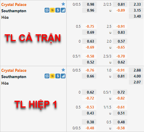 AEGoal chốt kèo bóng đá trực tiếp trận Crystal Palace vs Southampton diễn ra lúc 02h30 ngày 16/12 trong khuôn khổ giải Ngoại hạng Anh sau khi dựa trên tính toán, chuyển động về kèo châu Á và đội hình ra sân của 2 đội.