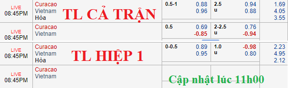 Tất nhiên, về tương quan trên lý thuyết Việt Nam đang bị đánh giá thấp hơn đối thủ đến từ vùng Caribe nhưng dưới tài thao lược tài tình của HLV Park Hang-seo, chúng ta hoàn toàn có thể hy vọng vào kết quả bất ngờ. Trên sàn châu Á cũng chứng kiến chỉ số khá ổn định so với đầu phiên khi Curacao chấp 3/4 và kèo tài xỉu 2 1/2 không có xáo trộn đáng kể và cân bằng.