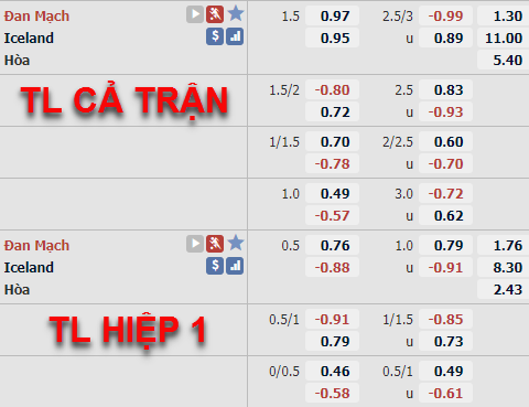 Đan Mạch -1 1/2 cả trận