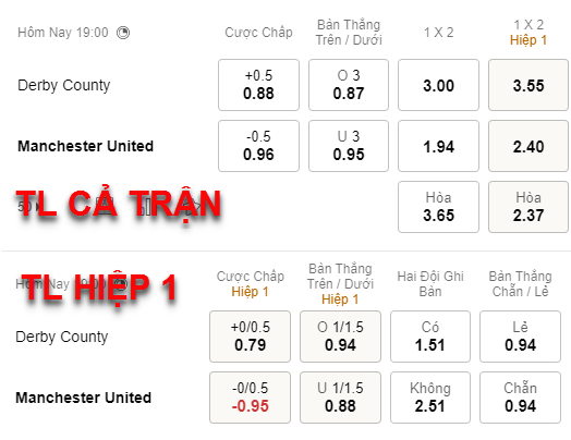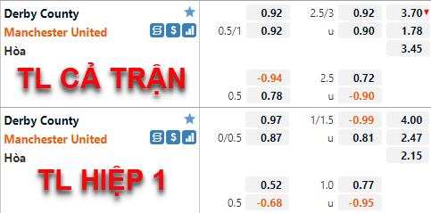 Tham khảo: Man Utd -1/4 Hiệp 1