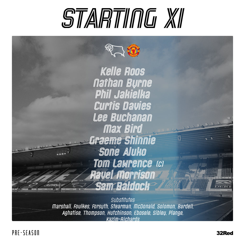 Derby County (4-3-3): Ryan Allsop, Nathan Byrne, Phil Jagielka, Richard Stearman, Graeme Shinnie, Max Bird, Louie Sibley, Jason Knight, Tom Lawrence, Colin Kazim-Richards, Sone Aluko