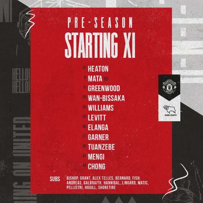 Man United (4-3-3): Tom Heaton, Aaron Wan-Bissaka, Axel Tuanzebe, Will Fish, Alex Telles, James Garner, Nemanja Matic, Andreas Pereira, Juan Mata, Mason Greenwood, Anthony Elanga