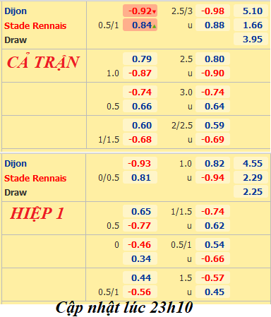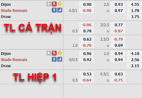 AEGoal.net chốt kèo bóng đá trực tiếp trận Dijon vs Rennes diễn ra lúc 00h00 ngày 17/10 trong khuôn khổ giải VĐQG Pháp sau khi dựa trên tính toán, chuyển động về kèo châu Á và đội hình ra sân của 2 đội.