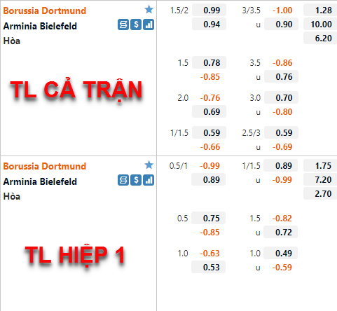 Tham khảo: Dortmund -3/4 Hiệp 1