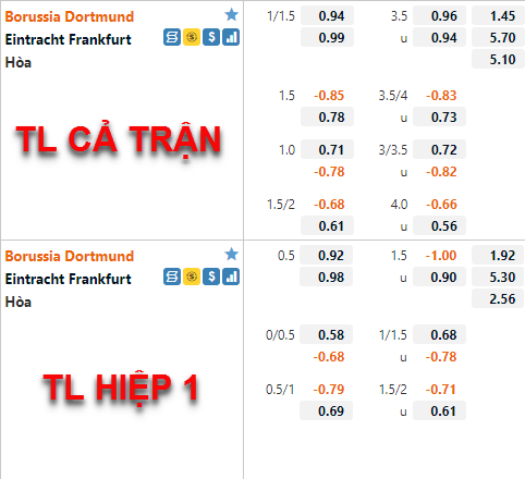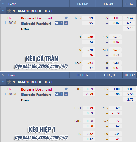 * Chốt kèo trận Dortmund vs Eintracht Frankfurt (23h30 ngày 14/8)