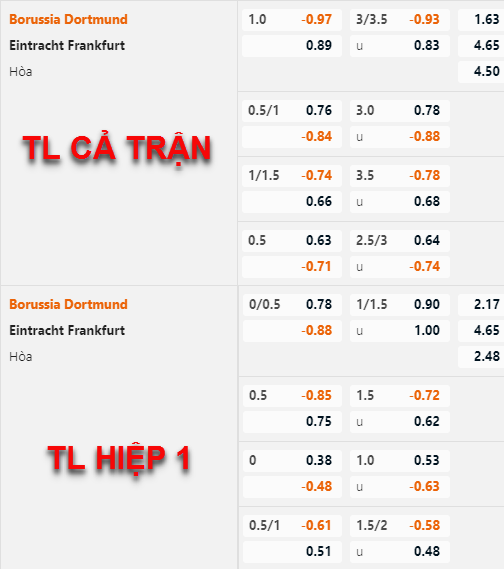 * Chốt kèo trận Dortmund vs Eintracht Frankfurt (23h30 ngày 22/4)