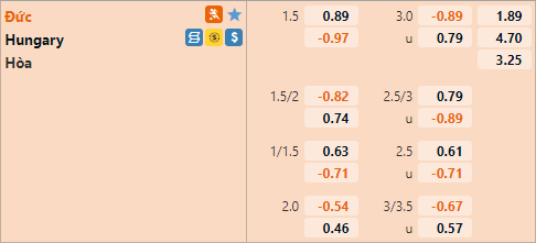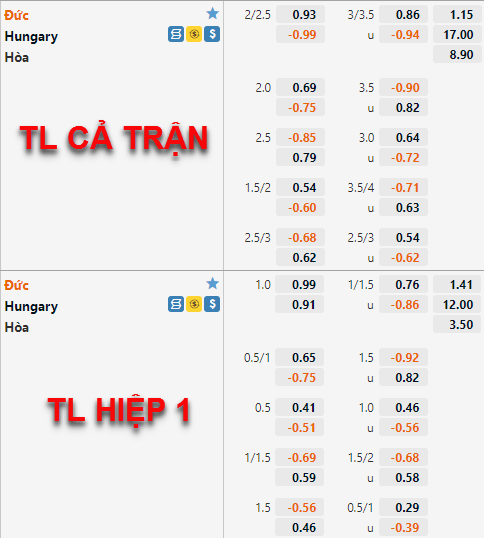 Nhìn vào diễn biến trên sàn giao dịch châu Á có thể thấy giới đầu tư trên thị trường đang hoàn toàn tin tưởng vào khả năng thắng kèo của ĐT Đức trận đấu này. Mặc dù ĐT Đức chỉ cần có điểm để đi tiếp nhưng với lợi thế sân nhà và đẳng cập vượt trội chắc mục tiêu của đội chủ nhà sẽ là một chiến thắng trận này. ĐT Hungary ở lượt đấu trước đã có một trận đấu xuất sắc khi cầm hoà ĐT Pháp nhưng đó là khi họ được thi đấu trên sân nhà, mọi thứ đã hoàn toàn khác ở trận đấu này khi trận đấu diễn ra trên đất Đức. Rất khó để Hungary có thể tạo nên bất ngờ
