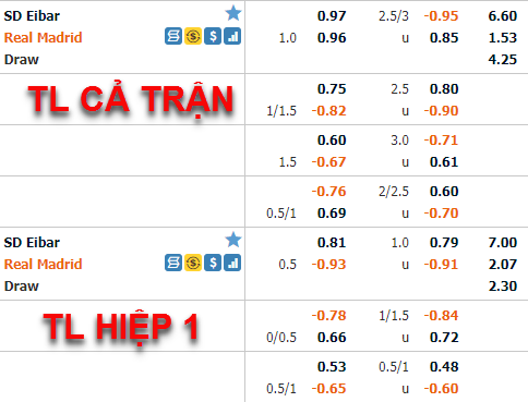Tỷ lệ chấp của Real Madrid vẫn đang được nhà cái châu Á duy trì ở mức 1 hoà nhưng điểm ăn của cửa trên đã được điều chỉnh giảm so với thời điểm chúng tôi cập nhật trước đây. Diễn biến tương tự bên phía tỷ lệ tổng bàn thắng khi mốc 2 3/4 vẫn đang là mốc chính của trận đấu nhưng điểm ăn của cửa tài đã được điều chỉnh giảm.