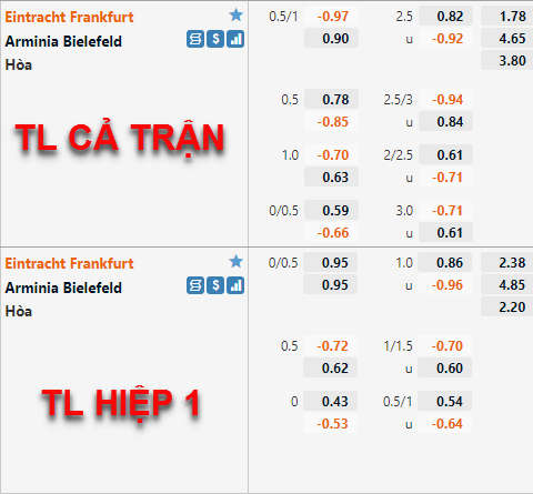 AEGoal chốt kèo bóng đá trực tiếp trận Eintracht Frankfurt vs Bielefeld diễn ra lúc 02h30 ngày 22/1 trong khuôn khổ giải VĐQG Đức sau khi dựa trên tính toán, chuyển động về kèo châu Á và đội hình ra sân của 2 đội.