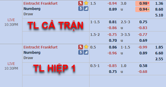 Frankfurt -1 1/2 cả trận