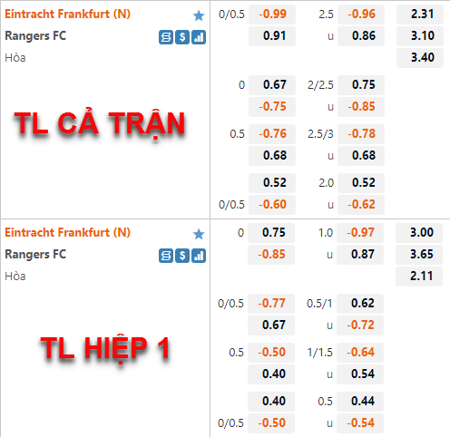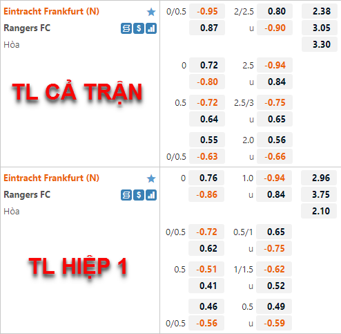 Những diễn biến trên sàn giao dịch châu Á đang đem lại dấu hiệu tốt cho lựa chọn cửa dưới và xỉu trận này. Điều này tương đối hợp lý khi Rangers hiện tại có phong độ tốt hơn đối thủ rất nhiều, nhưng theo quan điểm của người viết Frankfurt vẫn là đội nhỉnh hơn về mặt lực lượng, họ cũng thi đấu rất tốt tại Europa League mùa này khi vượt qua các đội bóng mạnh tại châu Âu, với tương quan lực lượng hiện tại Frankfurt vẫn có rất nhiều cơ hội chiến thắng. Lựa chọn cửa trên chưa chắc đã là một lựa chọn mạo hiểm trận này.