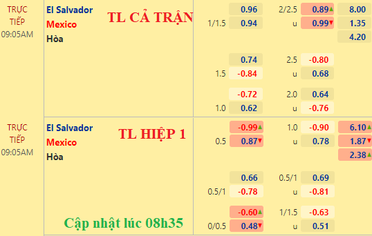 Chốt kèo trực tiếp trận El Salvador vs Mexico (09h05):