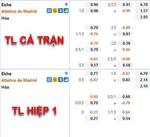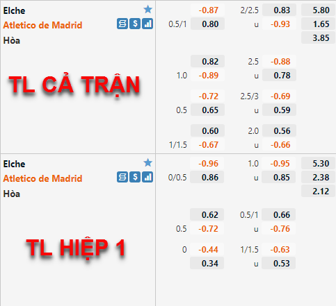 Tham khảo: Atletico Madrid -1/2 Hiệp 1