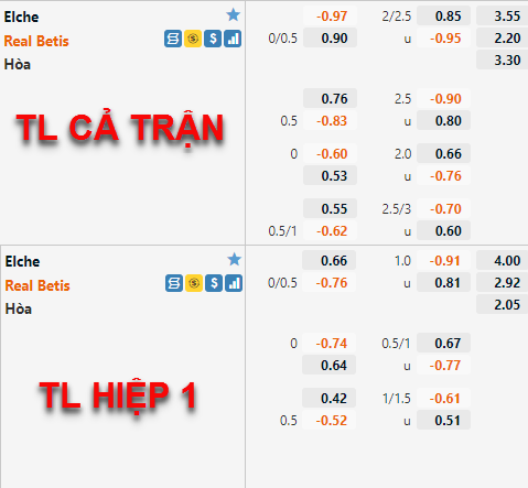 Diễn biến trên sàn giao dịch châu Á cho thấy giới đầu tư đang có phần nghi ngờ khả năng giành chiến thắng của Betis trận này. Nhưng theo chúng tôi Betis vẫn có cơ hội trận này, mặc dù thua liên tiếp 3 trận gần nhất nhưng đó là khi Betis phải đối đầu với nhưng đối thủ mạnh hơn, việc đối đầu với đối thủ yếu hơn như Elche trận này sẽ là một cơ hội tốt cho Betis cải thiện phong độ .