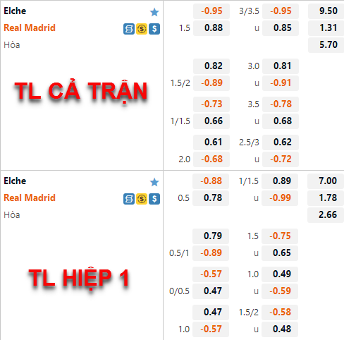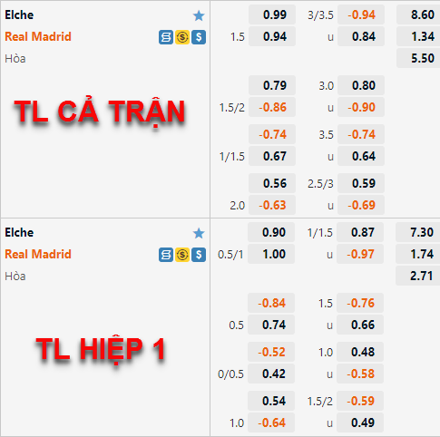 Tỷ lệ chấp chính của trận đấu vẫn đang được nhà cái châu Á duy trì ở mức chấp 1 1/2 của Real Madrid những hiện tại điểm của cửa trên đã được điều chỉnh tăng so với lần chúng tôi cập nhật trước. Trong khi đó tỷ lệ tài xỉu của trận đấu lại gần như không có biến động, mốc 3 1/4 đang là mốc chính của trận đấu nhu trước đây.