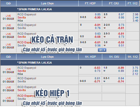 * Chốt kèo trận Espanyol vs Sevilla (00h00)
