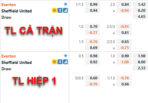 Everton vẫn chấp 1 1/4 nhưng lợi nhuận cho họ đã giảm đáng kể so với thời điểm sáng ngày 16/5. Trong bối cảnh tài xỉu 2 1/2 vẫn được giữ nguyên thì dịch chuyển handicap như vậy là rất khả quan với đội chủ nhà.