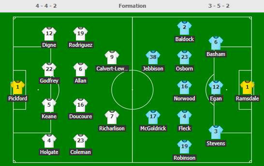 - Everton: Vắng Jean-Philippe Gbamin và Yerry Mina (chấn thương); Khả năn ra sân của James Rodriguez còn bỏ ngỏ.
