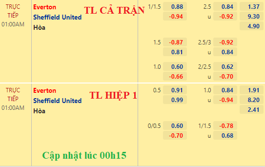 AEGoal chốt kèo bóng đá trực tiếp trận Everton vs Sheffield Utd diễn ra lúc 01h00 trong khuôn khổ giải Ngoại hạng Anh sau khi dựa trên tính toán, chuyển động về kèo châu Á và đội hình ra sân của 2 đội.