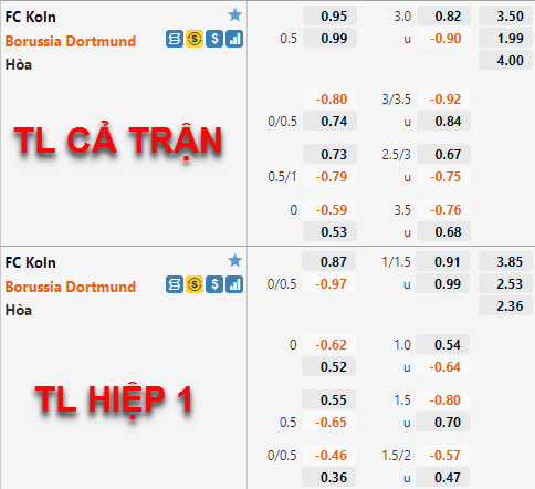 Tỷ lệ chấp chính của Dortmund vẫn được duy trì ở mức 1/2 như thời điểm chúng tôi cập nhật trước nhưng hiện tại điểm ăn của cửa trên đã được điều chỉnh giảm. Tương tự bên phía tỷ lệ tài xỉu mốc 3 vẫn là mốc chính của trận đấu nhưng điểm ăn của cửa tài đang có xu hướng giảm điểm