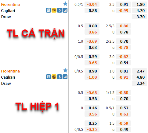 Thay đổi trên sàn giao dịch châu Á cho thấy giới đầu tư trên thị trường không mấy tin tưởng vào khả năng thắng kèo của Fiorentina trận này thay vào đó thị trường lại đang nghiêng về hướng dự đoán trận đấu sẽ diễn ra kém sôi nổi và không có nhiều bàn thắng được ghi. Điều này hoàn toàn hợp lý ở thời điểm này khi Fiorentina đang gặp nhiều vẫn đề ở khâu ghi bàn trong khi Cagliari đang có phong độ tương đối tốt trên sân khách khi thắng kèo cả 3 trận và họ chỉ thủng lưới 3 lần trong 3 trận đấu đó