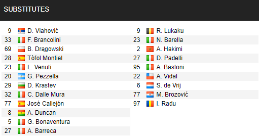 - Inter Milan: Vắng Danilo D'Ambrosio, Matteo Darmian, Matias Vecino, Arturo Vidal và Andrea Pinamonti (chấn thương).