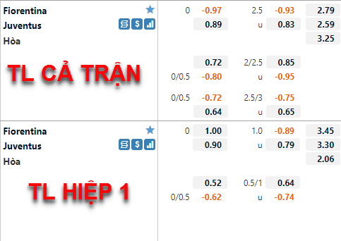 Tỷ lệ của trận đấu đã có những biến động đáng kể thời gian vừa qua. Tỷ lệ chấp 1/4 của Fiorentina đang được nhà cái đẩy lên làm mức tỷ lệ chấp chính của trận đấu thay cho mức 0:0 ở lần chúng tôi cập nhật trước. Trong khi đó, bên phía tỷ lệ tài xỉu mốc 2 1/4 vẫn được duy trì là mốc chính của trận đấu nhưng hiện tại điểm ăn của cửa xỉu đã được điều chỉnh giảm tương đối nhiều.