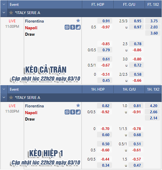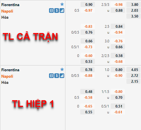 * Chốt kèo trận Fiorentina vs Napoli (23h00)