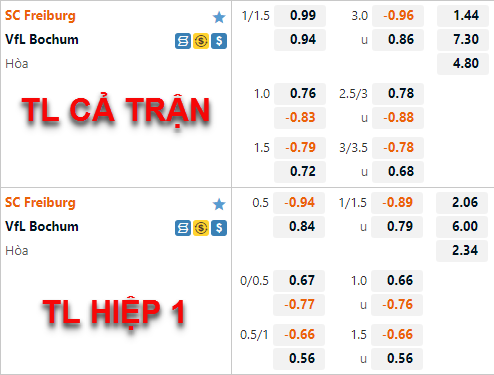 Sử dụng nhân sự tốt nhất với Ritsu Doan, Grifo, Sallai nhưng Freiburg lại bất ngờ giảm điểm đáng kể trên sàn giao dịch châu Á. Nếu như hồi đầu phiên chứng kiến chủ nhà chấp 1 1/4 cùng lợi điểm cân bằng giữa các lựa chọn đối lập. Nhưng đến khi thời điểm trận đấu chuẩn bị diễn ra, kèo chấp 1 1/4 đã chứng kiến cửa trên bỏ rất sâu.