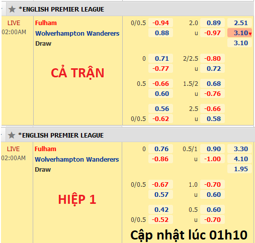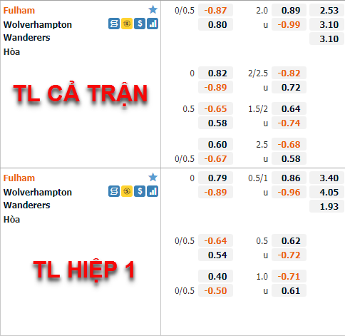 Tuy nhiên, đứng trước Fulham chỉ là tân binh và cũng không có thành tích đáng kể nào ở thời điểm hiện tại, Wolves có cơ hội cải thiện thành tích. Nhất là khi nhà cái châu Á đang có kèo niêm yết khá tích cực dành cho đội khách với chỉ số được chấp 1/4 tiến sát về mốc 0:0.