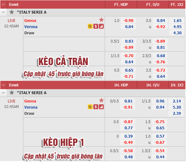 * Chốt kèo trận Genoa vs Verona (01h45)