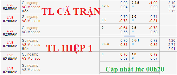 Monaco vẫn chấp 1/4 như phiên khớp lệnh sáng ngày 06/04 nhưng lợi nhuận cho cửa trên của họ tiếp tục tăng và lúc 00h20 đã ở mức 0.94 thay vì 0.84 như lúc 09h00 sáng 06/04. Trong khi đó, mức tài xỉu vẫn là 2 1/4 với điểm ăn thấp hơn cho cửa xỉu. Nhìn vào biến động đó, có thể thấy không nhiều người tin vào CLB xứ Công quốc.
