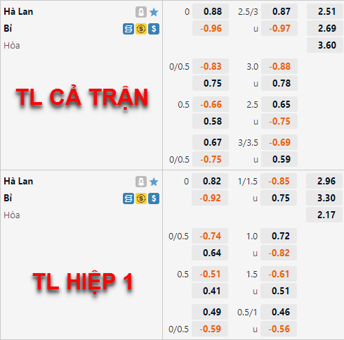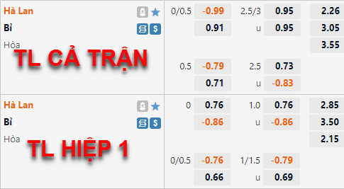 Hiện tại tỷ lệ chính của trận đấu được duy trì ở mức 0:0 thay cho mức chấp 1/4 của ĐT Hà Lan ở thời điểm chúng tôi cập nhật lần trước. Trong khi đó tỷ lệ tài xỉu lại có xu hướng tăng điểm, mốc 2 3/4 vẫn là mốc chính nhưng điểm ăn của cửa tài đang có dấu hiệu giảm điểm.
