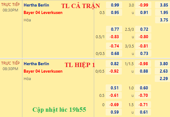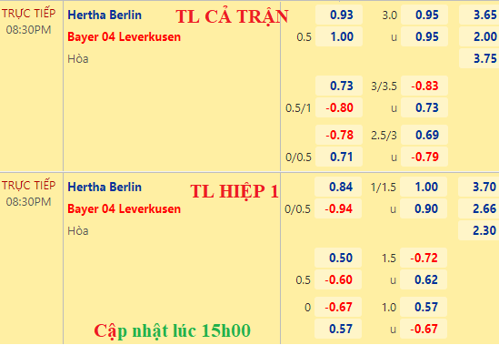 Chốt kèo trực tiếp trận Hertha Berlin vs Leverkusen (20h30):