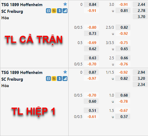Thiếu vắng nhiều cái tên quan trọng trong đội hình, niềm tin mà Hoffenheim tạo ra trước Freiburg ở trận này là không nhiều. Trên thị trường, việc nhà cái vẫn duy trì kèo hoà được thua đã cho thấy những lo ngại nhất định với họ.