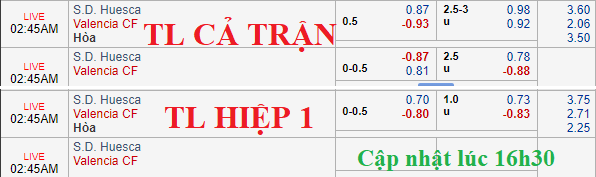 Dù phải làm khách trận này, nhưng Huesca cũng là đối thủ yếu và cơ hội trụ hạng rất thấp. Mức kèo chấp tuy chỉ 1/2, nhưng giá ăn của Valencia đã giảm mạnh, cho thấy khả năng thắng trận của họ cũng không phải nhỏ.