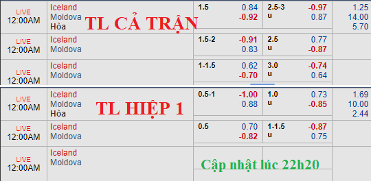 Chốt kèo trực tiếp trận Iceland vs Moldova (23h00):