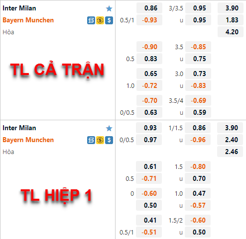 Những thay đổi trên sàn châu Á thời gian vừa qua cho thấy thị trường đang tin tưởng vào khả năng thắng của Bayern Munich cũng như khả năng trận đấu sẽ diễn ra sôi nổi với nhiều bàn thắng. Theo quan điểm của người viết thì lựa chọn cửa tài là lựa chọn đáng lưu ý hơn bởi Inter Milan nhiều khả năng vẫn sẽ thi đấu cởi mở trận này, còn ở tỷ lệ chấp 3/4 của Bayern Munich có lẽ chưa phải là mức chấp quá cao. Lựa chọn cửa trên chưa chắc đã là một lựa chọn an toàn