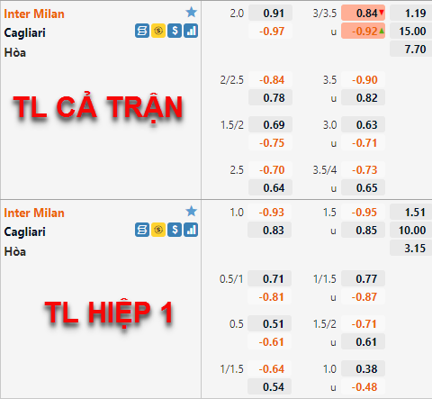 AEGoal chốt kèo bóng đá trực tiếp trận Inter Milan vs Cagliari diễn ra lúc 02h45 ngày 13/12 trong khuôn khổ giải VĐQG Italia sau khi dựa trên tính toán, chuyển động về kèo châu Á và đội hình ra sân của 2 đội.