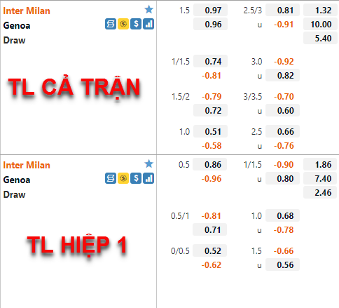 * Chốt kèo trận Inter Milan vs Genoa (23h30 ngày 21/8)