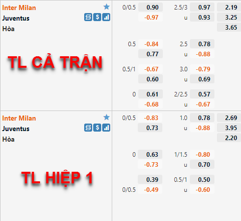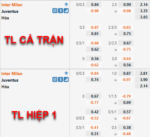 Tham khảo: Inter Milan -1/4 cả trận