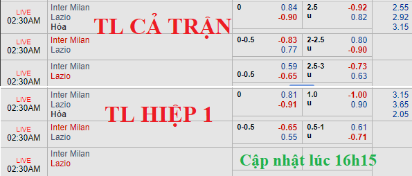 CHỐT KÈO TRỰC TIẾP trận Inter Milan vs Lazio (01h30)