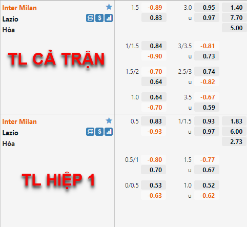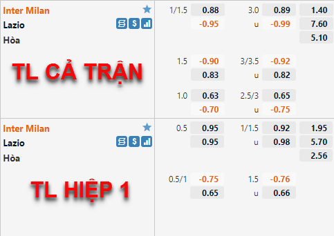 Inter Milan -1 1/4 cả trận