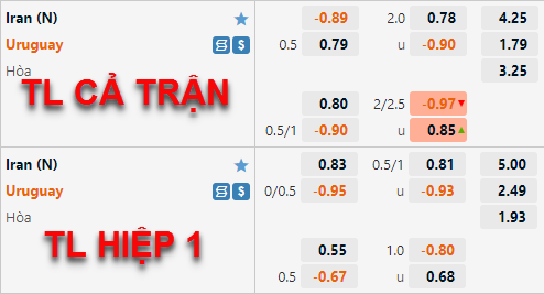 Uruguay -1/2 cả trận