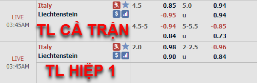 Italia tiếp tục nhận được sự tin tưởng từ phần đông giới đầu tư. Kèo chấp 4 1/2 của họ lúc 18h00 ngày 26/03 gia tăng lên thành 4 3/4 trước giờ bóng lăn chừng 1 tiếng. Trong khi mức handicap biến động như vậy thì mốc tài xỉu 5 hòa lại được giữ nguyên, có chăng là lợi nhuận cho cửa tài giảm vài giá nhưng không đáng kể.