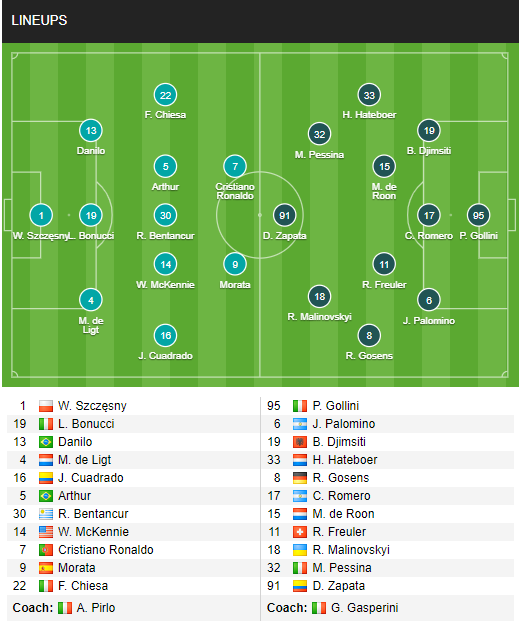 Không có thiếu vắng nào đáng kể trong cuộc tiếp đón Atalanta lần này, đặc biệt là hàng công, Juventus đang tỏ ra hoàn toàn áp đảo so đối thủ. Tuy nhiên ở phía đối diện, việc Atalanta vẫn đang tự tin ra sân với những quân bài tấn công đã cho thấy sự hứa hẹn vào kịch bản bùng nổ của trận đấu.